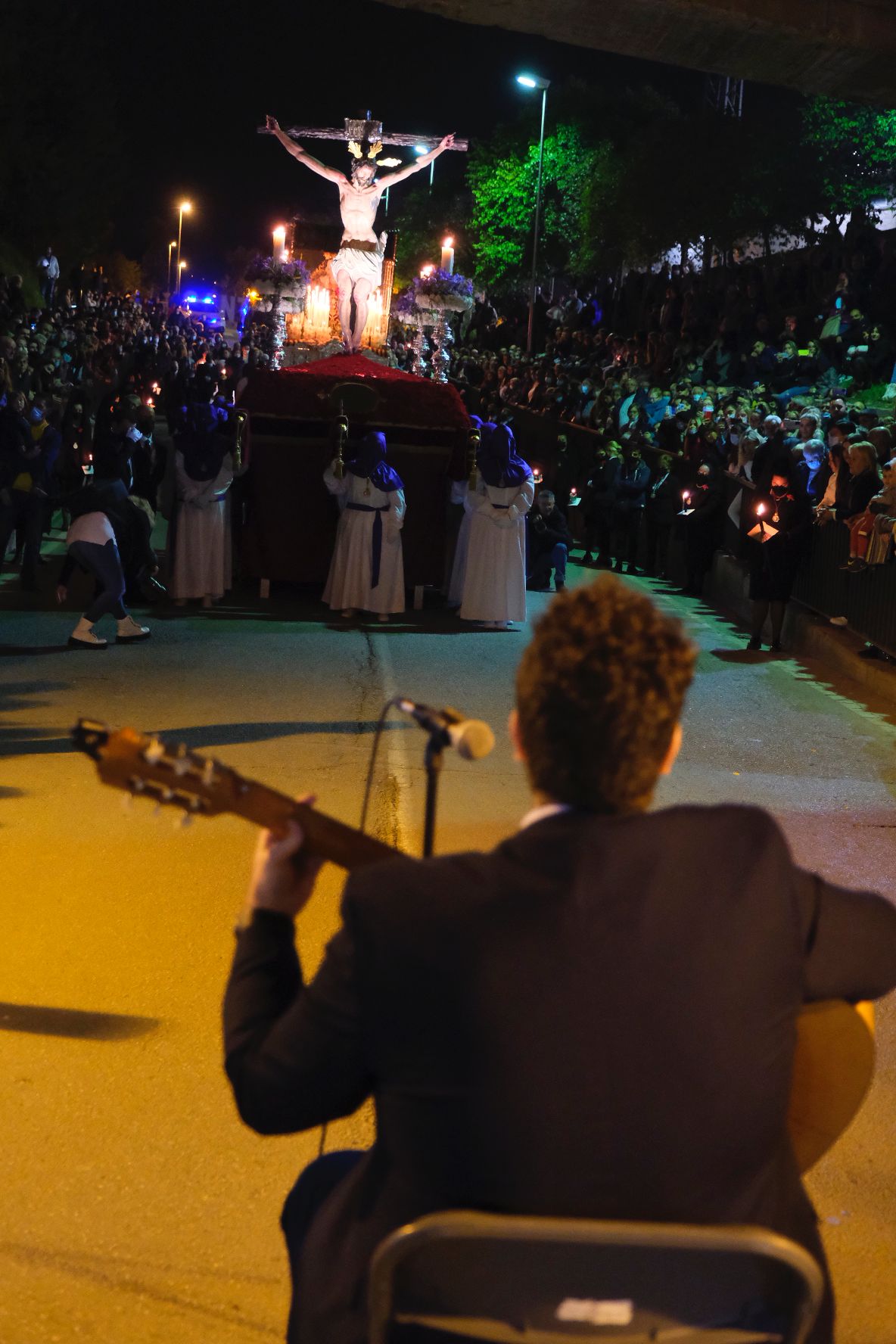 Processó amb saetas del Santísimo Cristo de la Salud i de Nuestra Señora de la Soledad acompanyats per les bandes de música